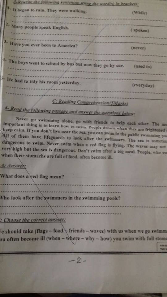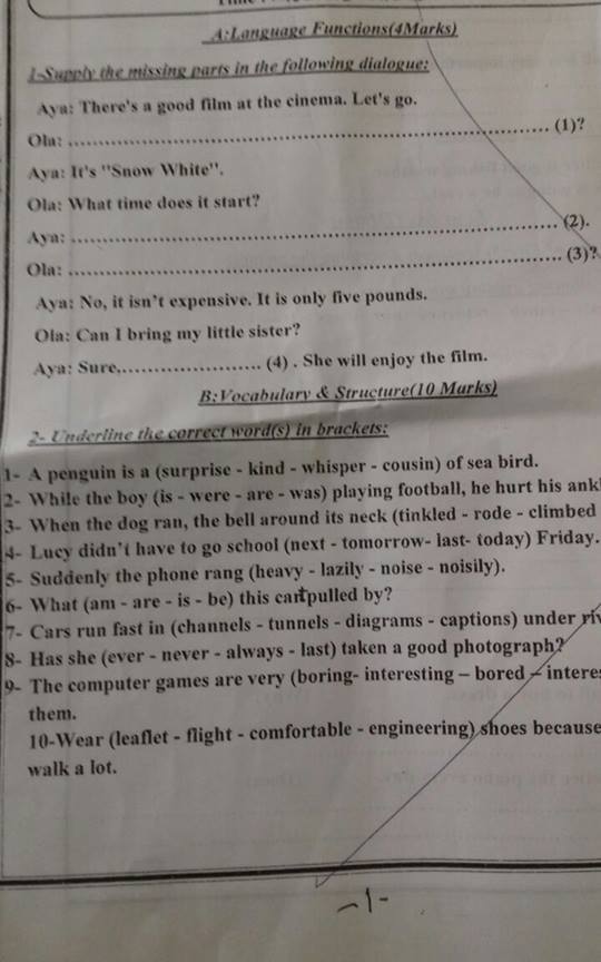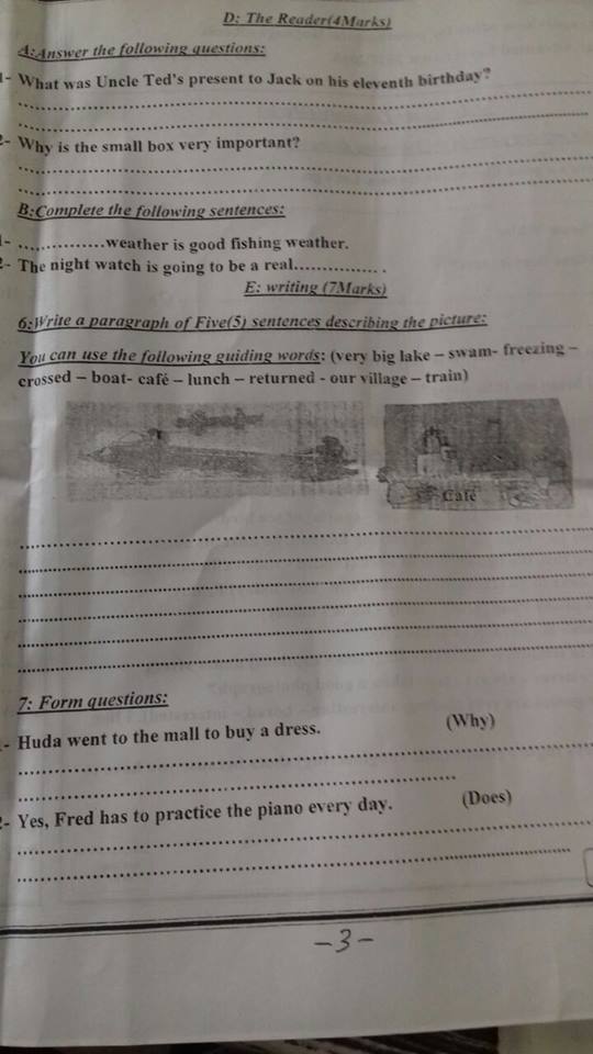 بالصور :. نموذج للاختبار النهائي لمنهج English World للصف الخامس الفصل الأول