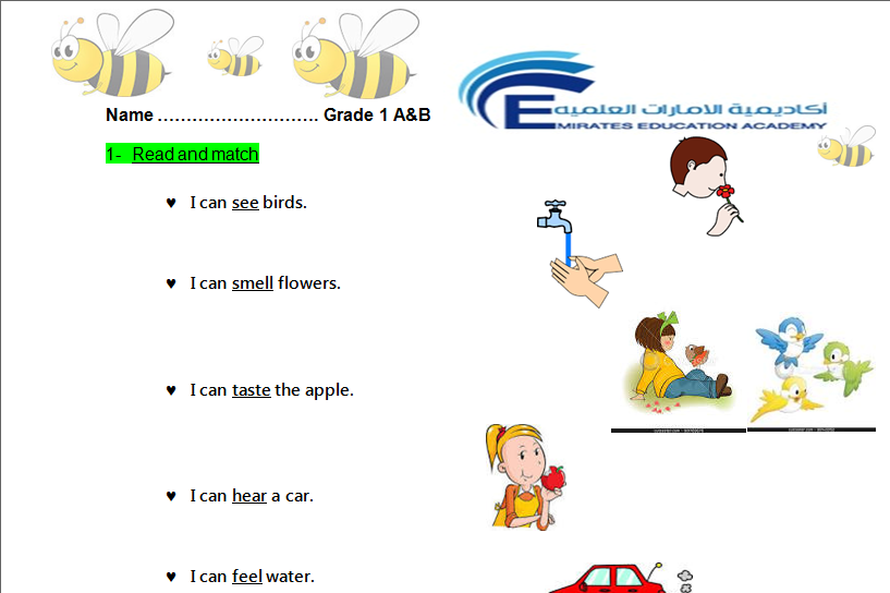 نموذج ورد قابل للتعديل ورقة عمل لمادة اللغة الانجليزية (Unit 6 Lesson 1 -5 -6) للصف الأول الفصل الثاني