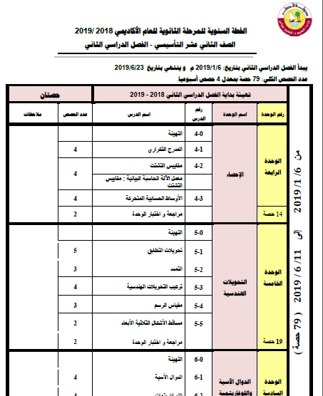 الخطه الفصليه لمادة الرياضيات الصف الثاني عشر متقدم الفصل الثاني | الفصل الثاني | 0 | 2K |
