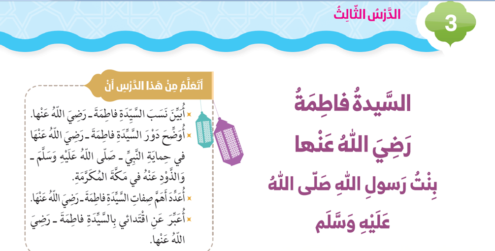 بوربوينت حلول درس السيدة فاطمة رضي الله عنها لمادة التربية الاسلامية الصف الثاني الفصل الثاني