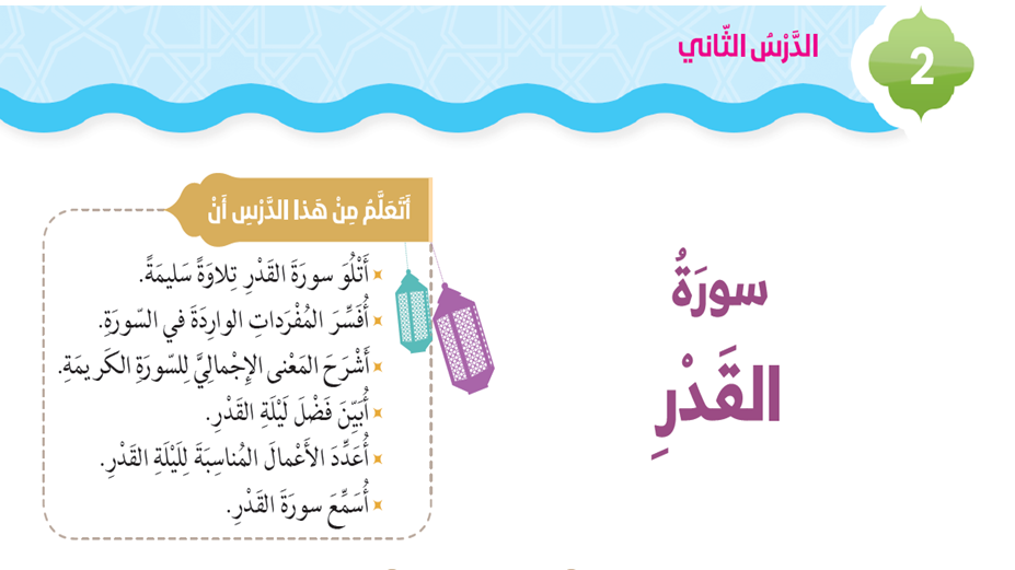 بوربوينت حلول درس سورة القدر لمادة التربية الاسلامية الصف الثاني الفصل الثاني