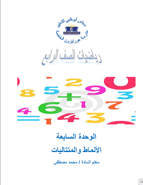 أوراق عمل (الأنماط والمتتاليات) لمادة الرياضيات المتكاملة للصف الرابع الفصل الثاني