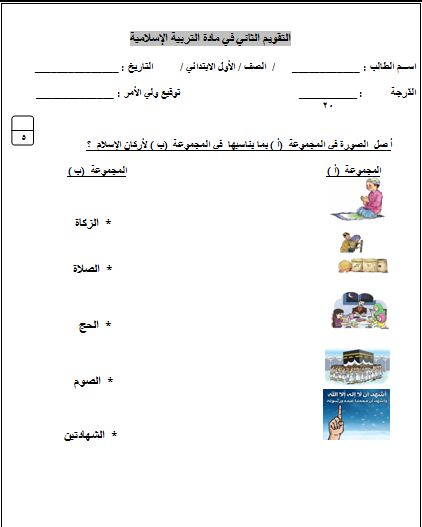 نموذج Word اختبار (التقويم الثاني) لمادة التربية الإسلامية للصف الأول الفصل الثاني لتحميل الملف PDF اضغط هنا وتابع