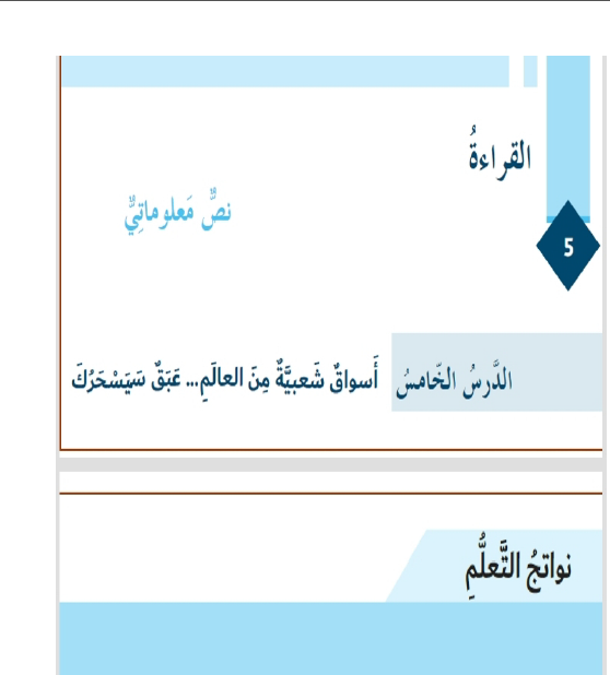 درس (أسواق شعبية من العالم عبق سيسحرك) لمادة اللغة العربية للصف السابع مع الإجابات الفصل الثاني