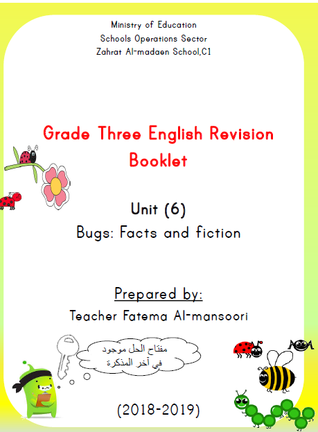 اوراق عمل مراجعة الوحدة السادسة مع الحل لماده اللغه الانجليزيه للصف الثالث الفصل الثاني