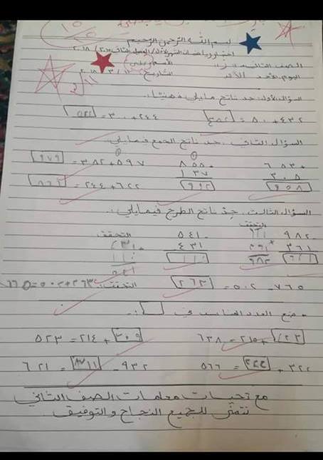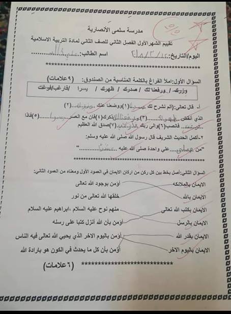بالصور نماذج اختبار الشهر الأول لمواد الصف الثاني الفصل الثاني