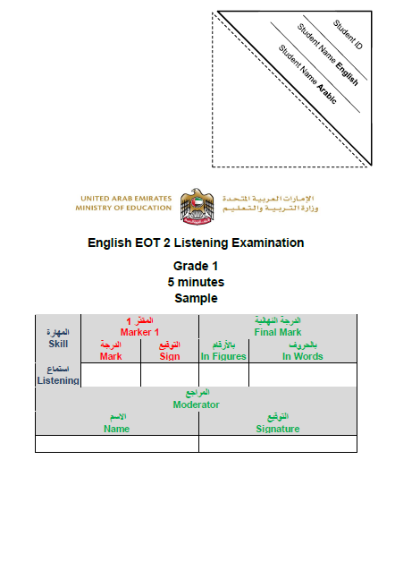 نموذج امتحان استماع لماده اللغة الإنجليزية للصف الاول الفصل الاول لتحميل الملف PDF اضغط هنا وتابع