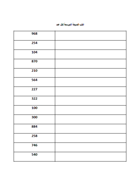 ورقة عمل الصيغة الموسعة لمادة الرياضيات المتكاملة للصف الثاني الفصل الثاني