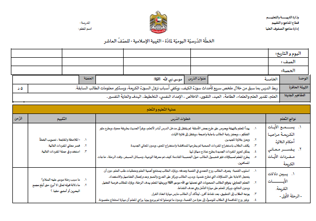 الخطة الدرسية والتحضير اليومية لجيمع الدروس لمادة التربية الاسلامية الصف العاشر الفصل الثالث لتحميل الملف اضغط هنا وتابع