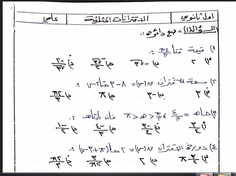 مراجعة شاملة مكثفة مع الإجابات لمادة الرياضيات للصف الأول ثانوي-علمي- الفصل الثاني