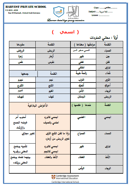 اوراق عمل ابسمي لماد اللغة العربية للصف السابع الفصل الثالث لتحميل الملف PDF اضغط هنا وتابع