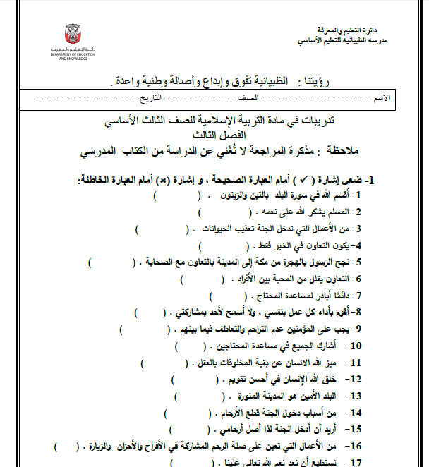 اوراق عمل + تدريبات لمادة اللغة العربية الصف الثالث الفصل الثالث لتحميل الملف PDF اضغط هنا وتابع