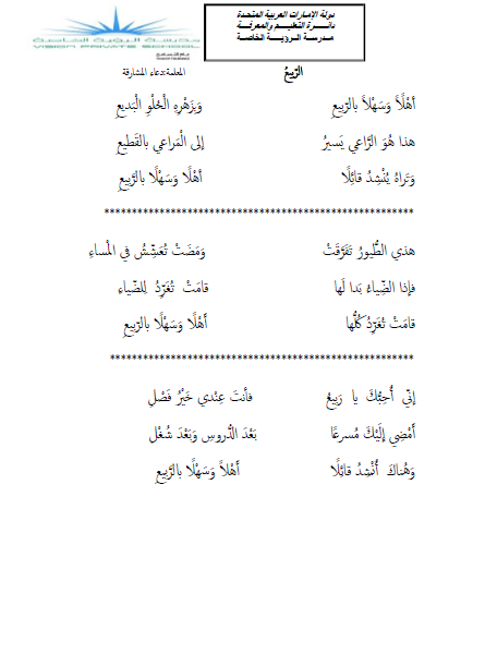 ورقة عمل الربيع فهم المقروء مادة اللغة العربية الصف الثالث الفصل الثالث لتحميل الملف PDF اضغط هنا وتابع