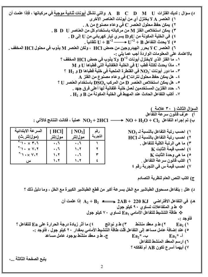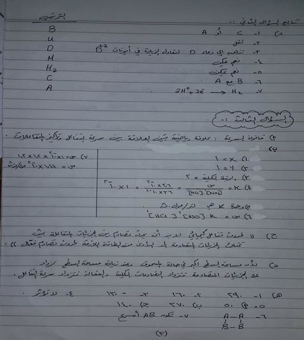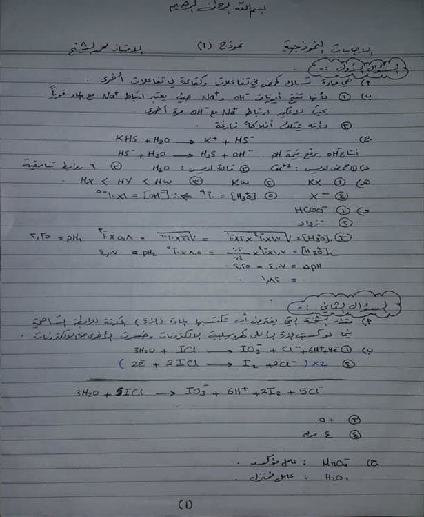 ننقل لكم بالصور امتحان مقترح لمادة الكيمياء توجيهي علمي مع الاجابات
