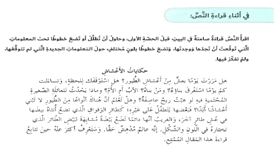 درس حكايات الاعشاش مع الحل لمادة اللغة العربية الصف السابع الفصل الثالث