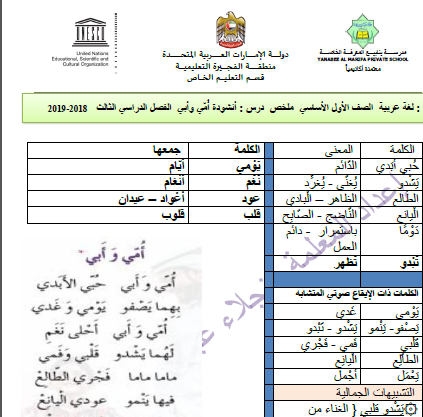 ارواق عمل درس امي لمادة اللغة العربية الصف الاول الفصل الثالث لتحميل الملف PDF اضغط هنا وتابع