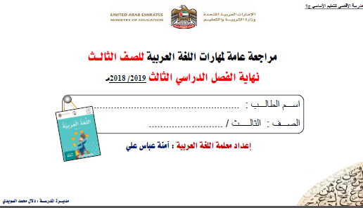اوراق عمل مراجعة المهارات لمادة اللغة العربية الصف الثالث الفصل الثالث