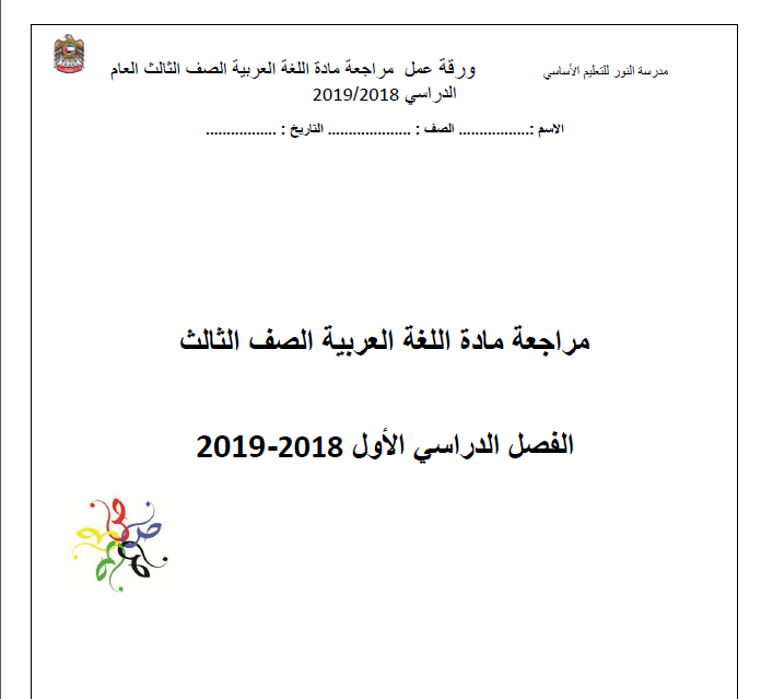 اوراق عمل مراجعة عامة لمادة اللغة العربية الصف الثالث الفصل الثالث