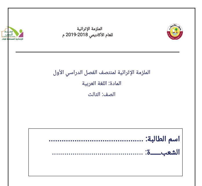 ملزمة اثرائية + الاجابات مادة اللغة العربية الصف الثالث الفصل الاول المنهاج القطري