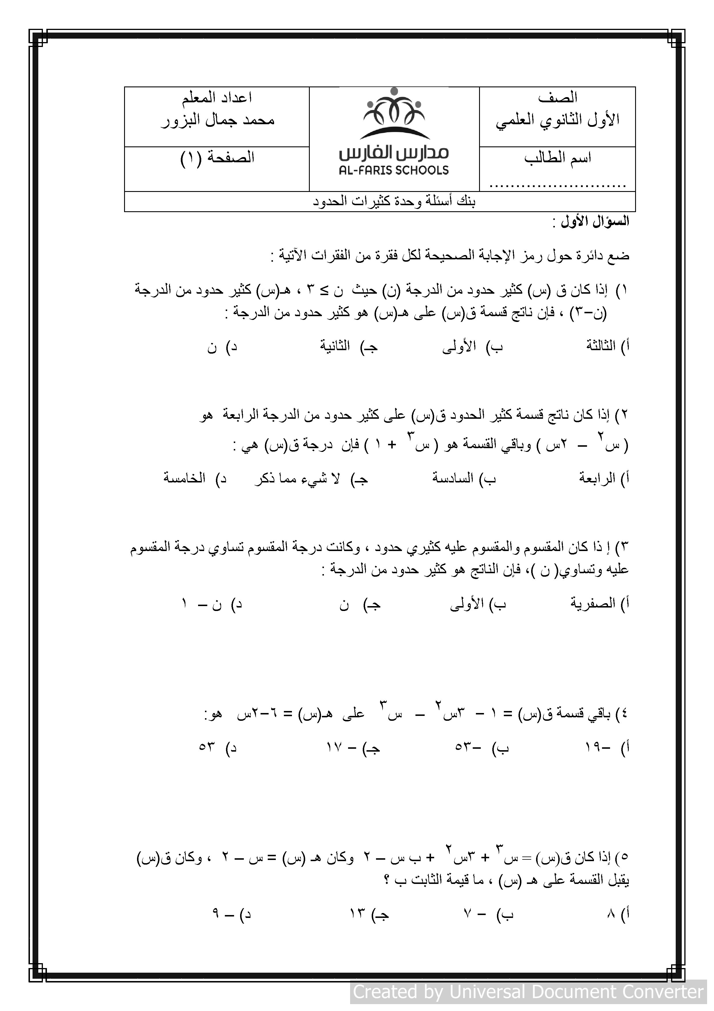 ه همسآت شرقية طاقم الادارة إنضم 1 فبراير 2013 المشاركات 17,282 مستوى التفاعل 362 النقاط 63 الإقامة المفرق 23 أكتوبر 2019 #1 التحميل المجاني بالضغط هنا وتااابع المرفقات الوحدة الأولى كثيرات الحدود للصف الأول ثانوي علمي.zip 824.1 KB · المشاهدات: 53
