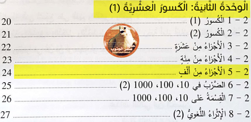 شرح :. الدرس الخامس الأجزاء من ألف الوحدة الثانية الكسور العشرية (1) لمادة الرياضيات الصف الرابع الفصل الاول