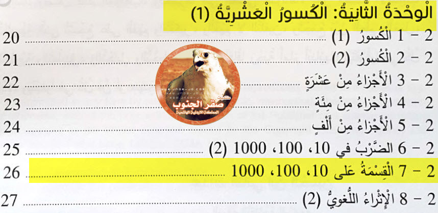 شرح :. الدرس السابع الضرب في 10، 100 ، 1000 الوحدة الثانية الكسور العشرية (1) لمادة الرياضيات الصف الرابع الفصل الاول