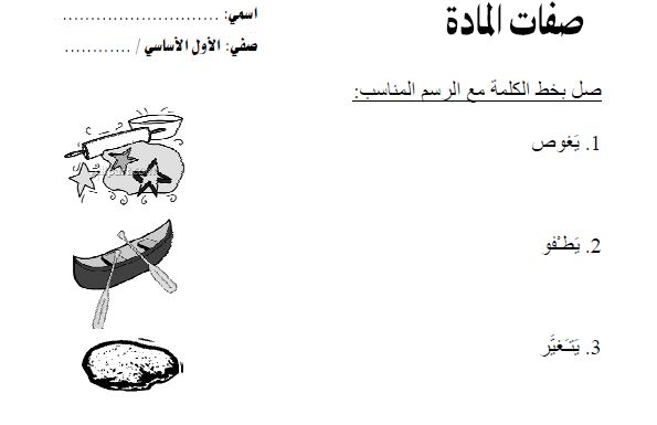 تلخيص واوراق عمل صفات المادة لمادة العلوم الصف الاول الفصل الثالث