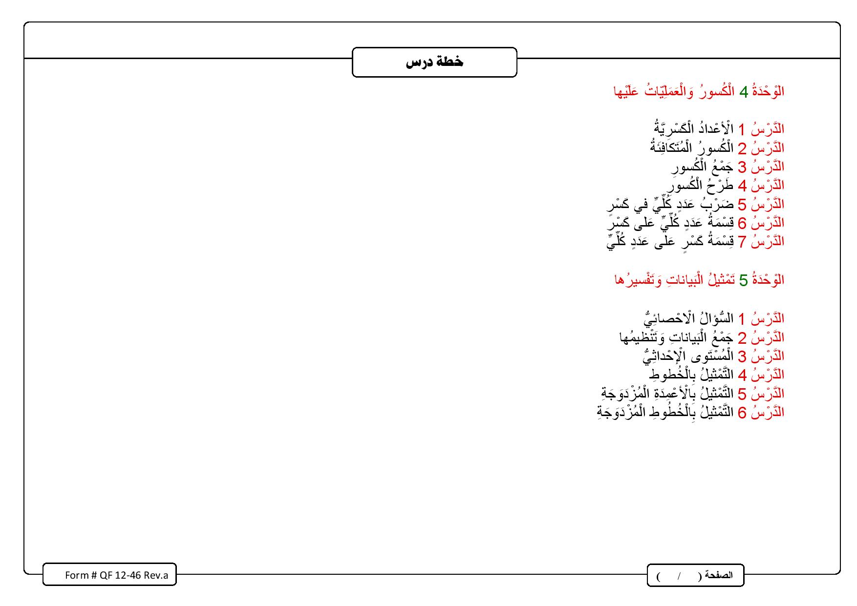 نموج Word قابل للتعديل تحضير شامل لمادة الرياضيات الصف الخامس الفصل الاول