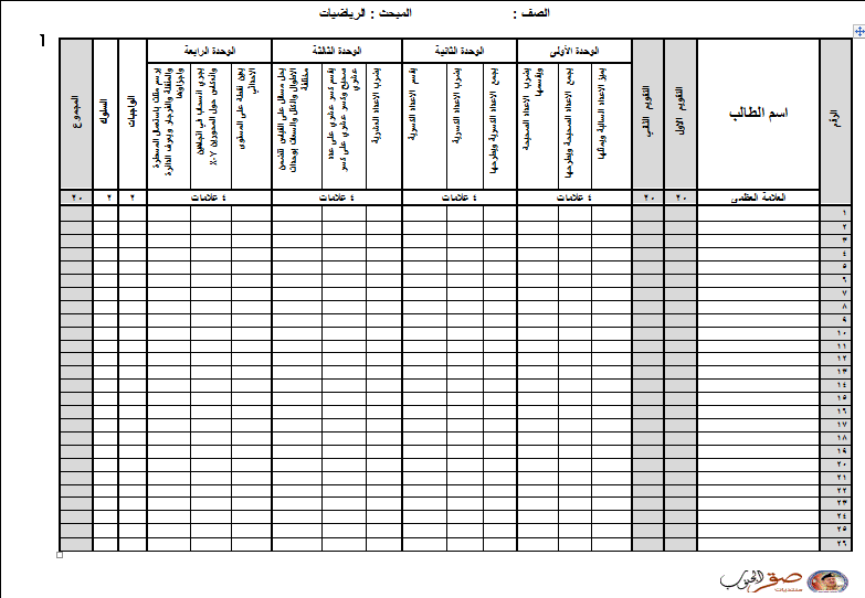 نموذج Word قابل للتعديل سجلات جانبية لمادة الرياضيات من الصف الرابع للصف العاشر 2021-2022