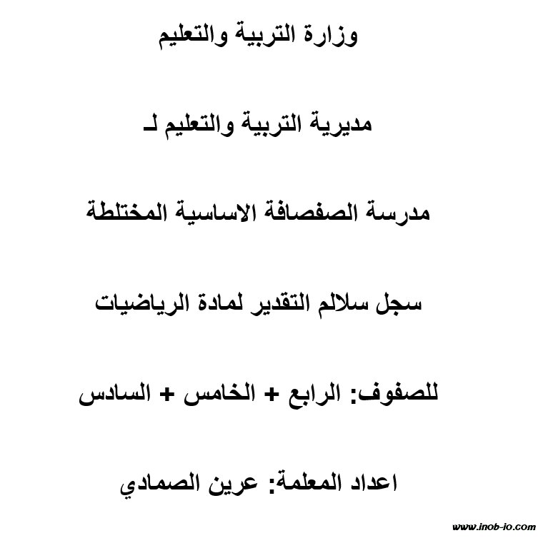 نموذج Word قابل للتعديل سجل سلالم تقدير لمادة الرياضيات من الصف الرابع للصف السادس 2022