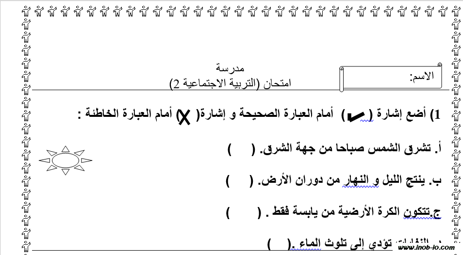 نموذج Word قابل للتعديل امتحان الشهر الثاني لمادة التربية الاجتماعية للصف الثاني الفصل الأول