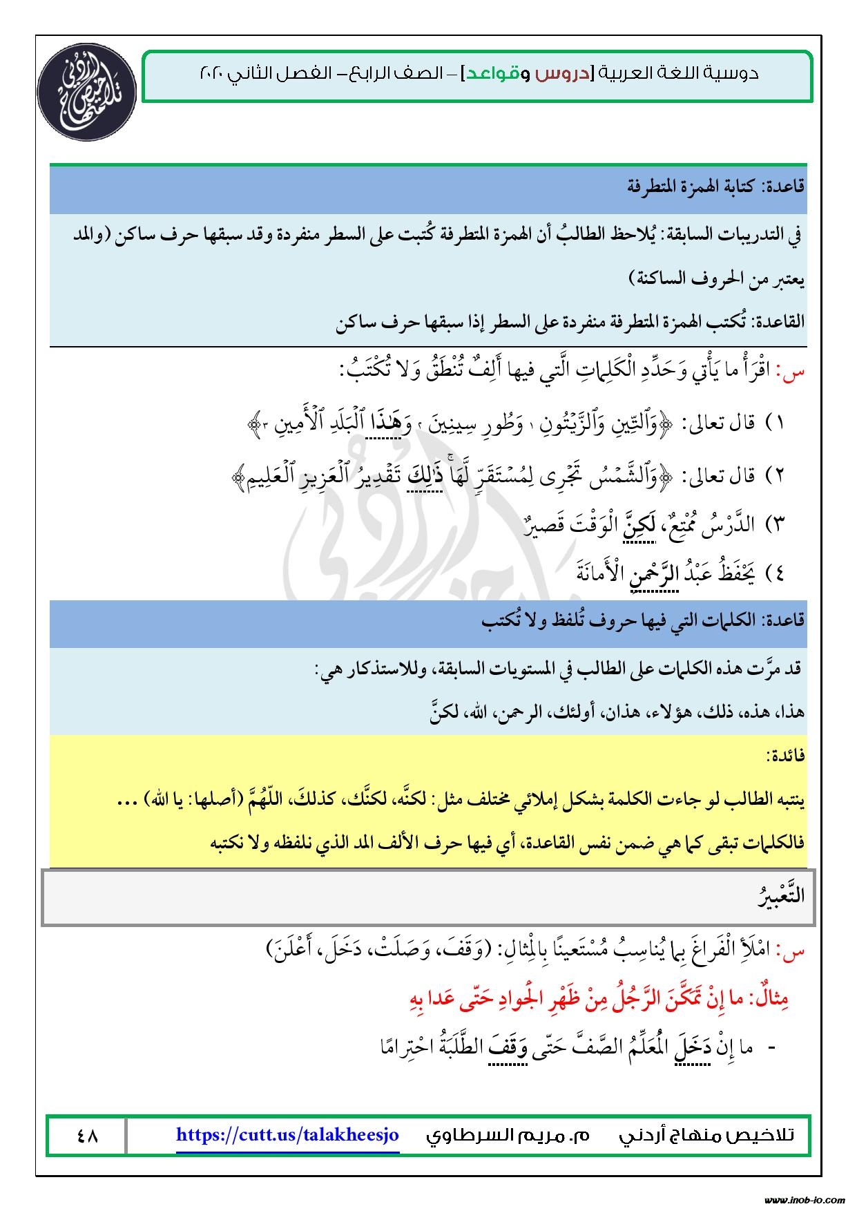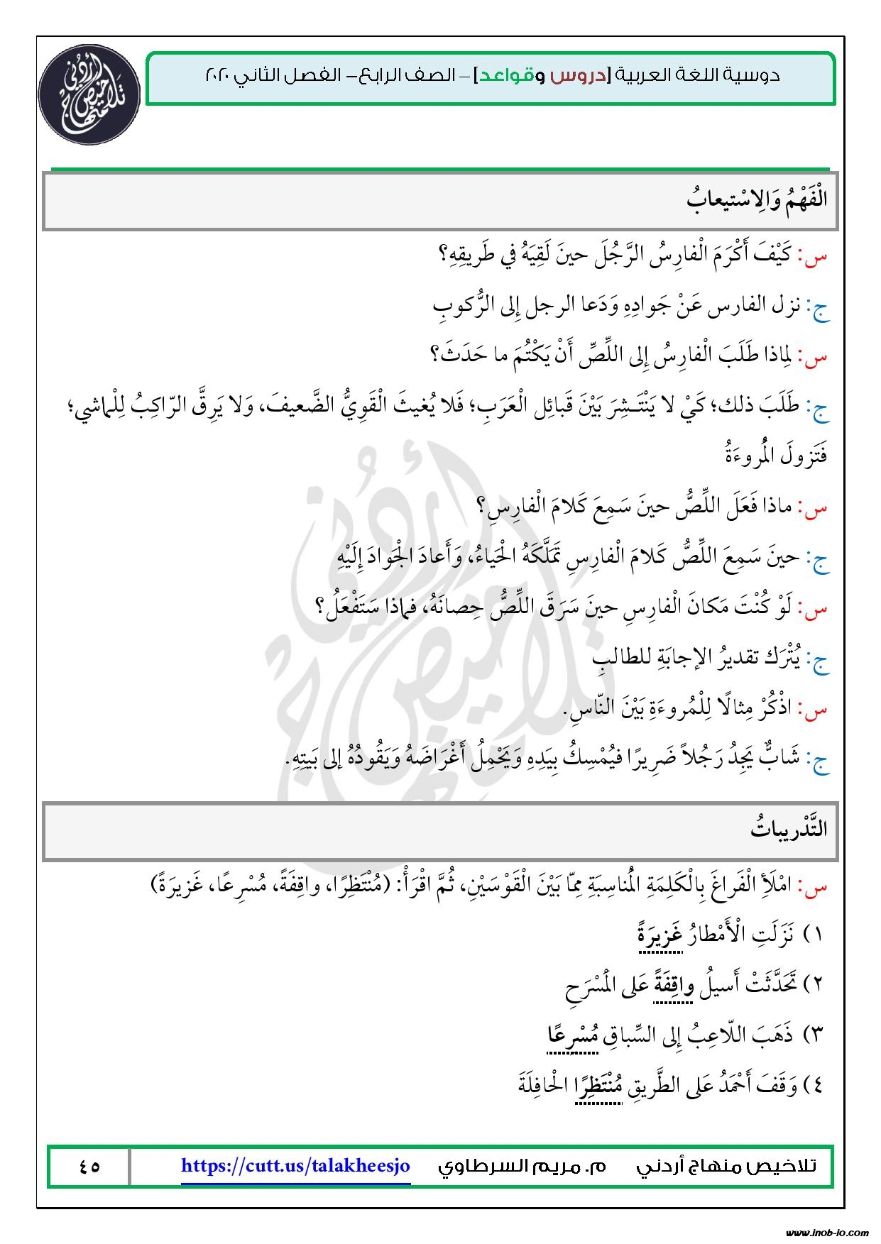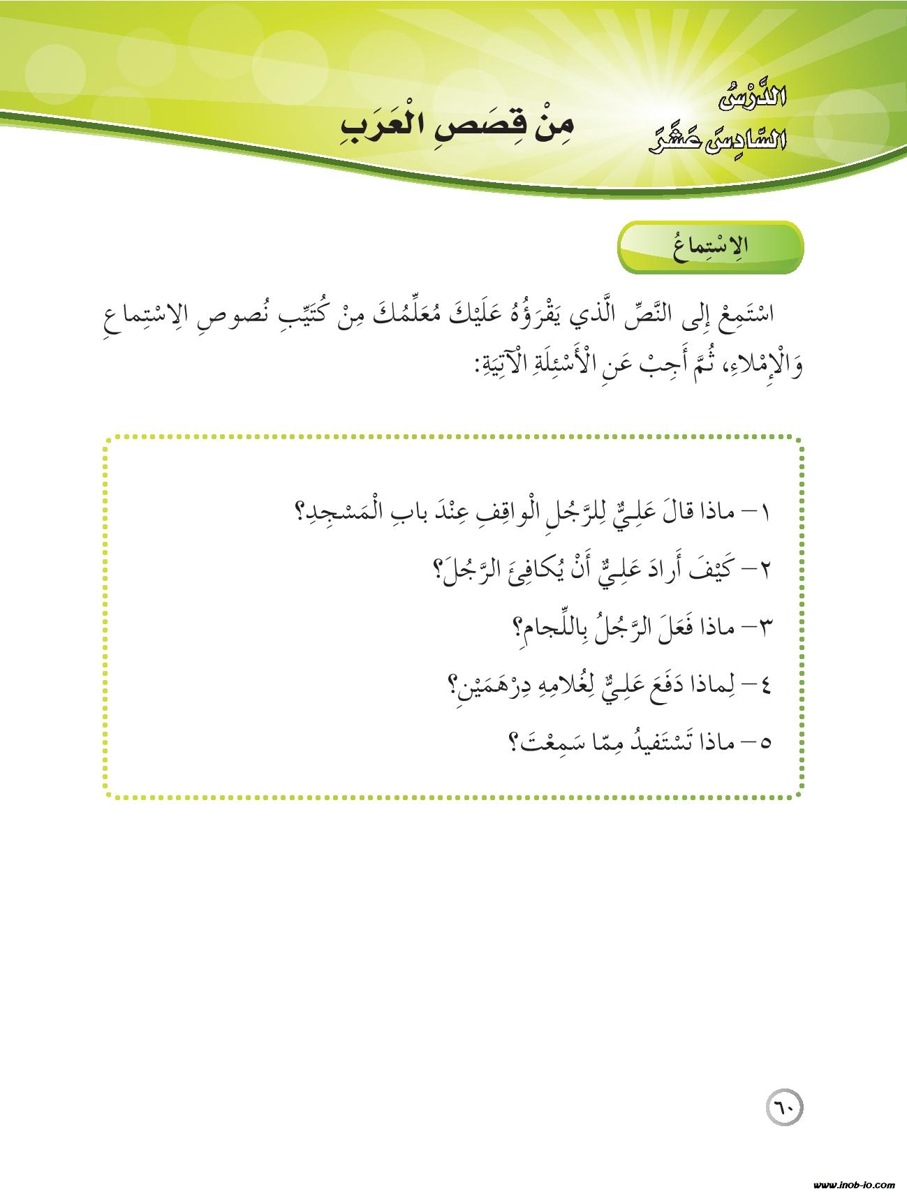 بالصور :. شرح وحلول و اجابات ومعاني وتراكيب درس من قصص العرب لمادة اللغة العربية الصف الرابع الفصل الثاني