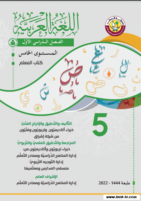 دليل المعلم لمادة اللغة العربية الصف الخامس الفصل الأول المنهاج القطري نسخة 1444-2023