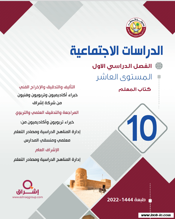 كتاب المعلم لمادة الدارسات الاجتماعية الصف العاشر الفصل الاول المنهاج القطري نسخة 1444-2022