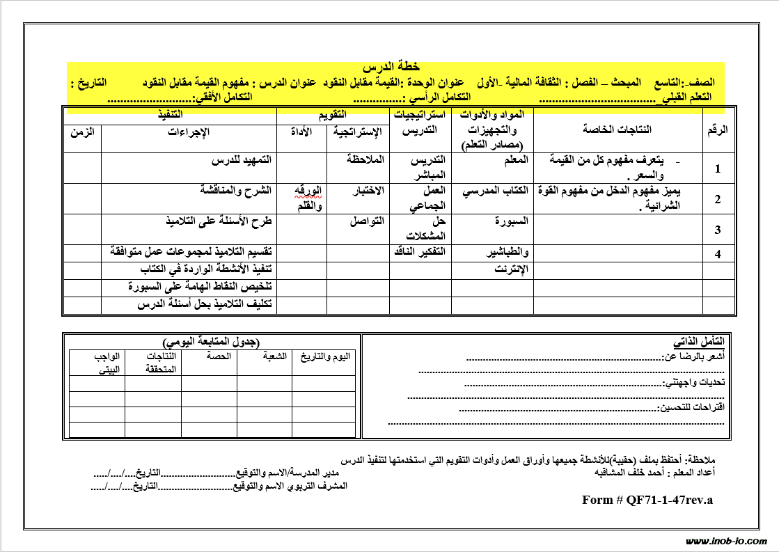 نموذج Word قابل للتعديل دفتر التحضير لمادة الثقافة المالية الصف التاسع الفصل الاول 2023