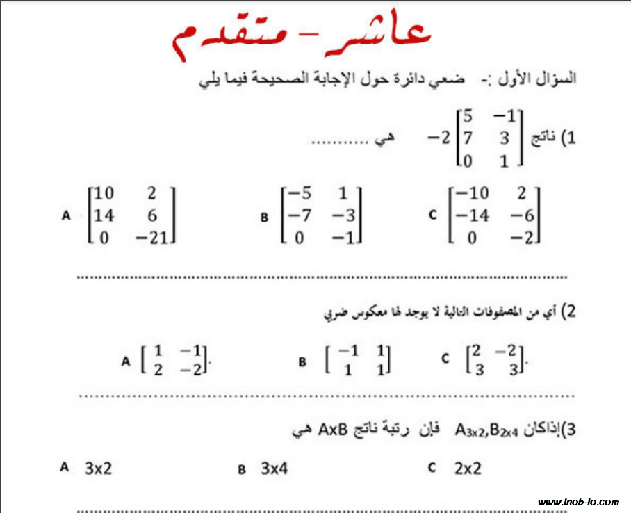 مراجعة شاملة لمادة الرياضات المسار المتقدم الصف العاشر الفصل الاول