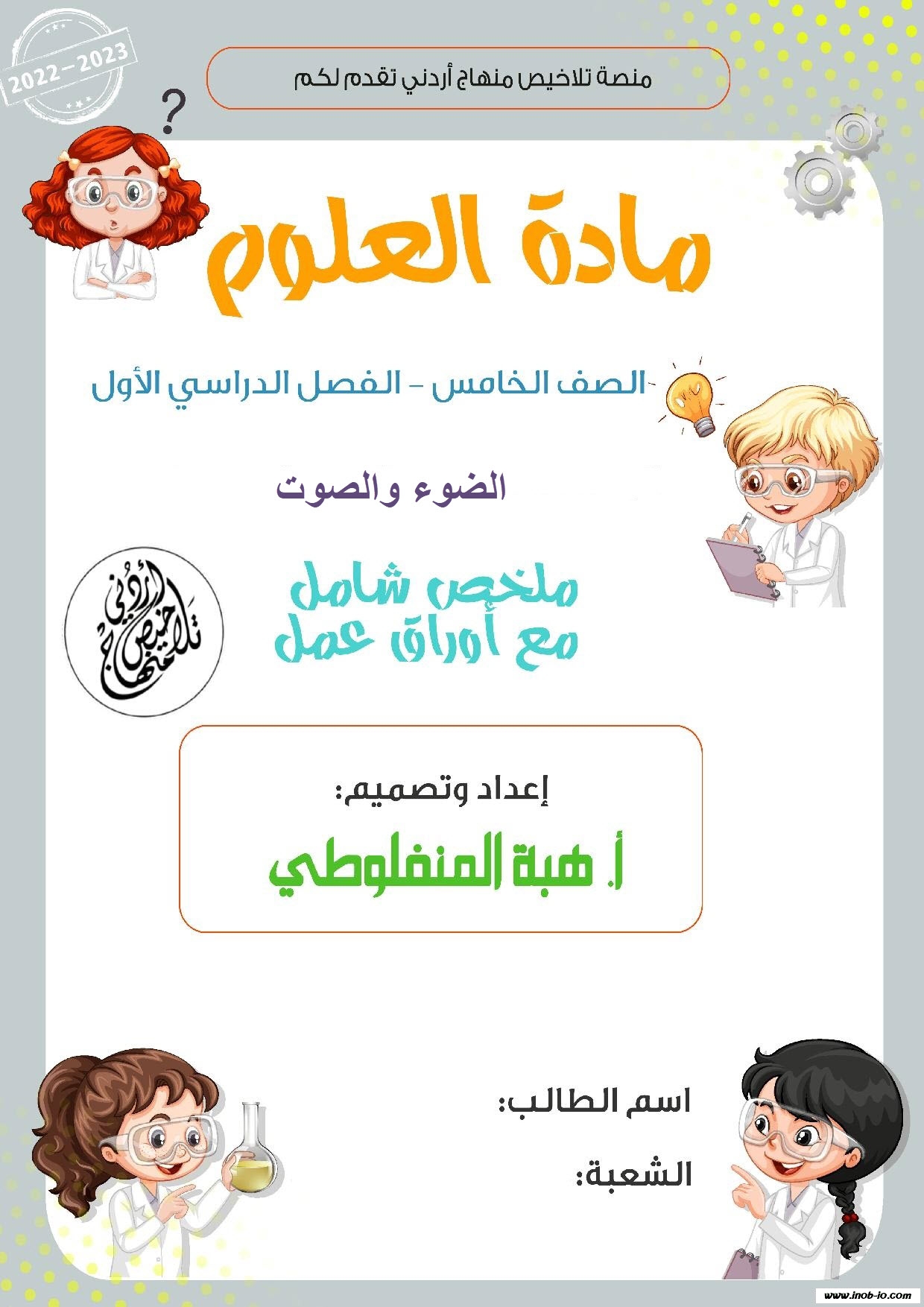 تلخيص وشرح شامل لوحد الضوء والصوت Collins لمادة العلوم الصف الخامس الفصل الاول