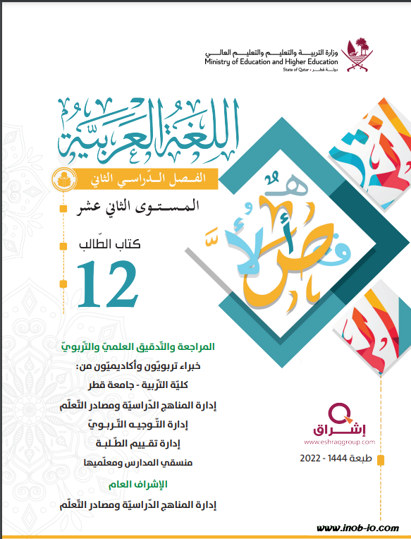 كتاب الطالب لمادة اللغة العربية الصف الثاني عشر الفصل الثاني المنهاج القطري نسخة 1444-2022