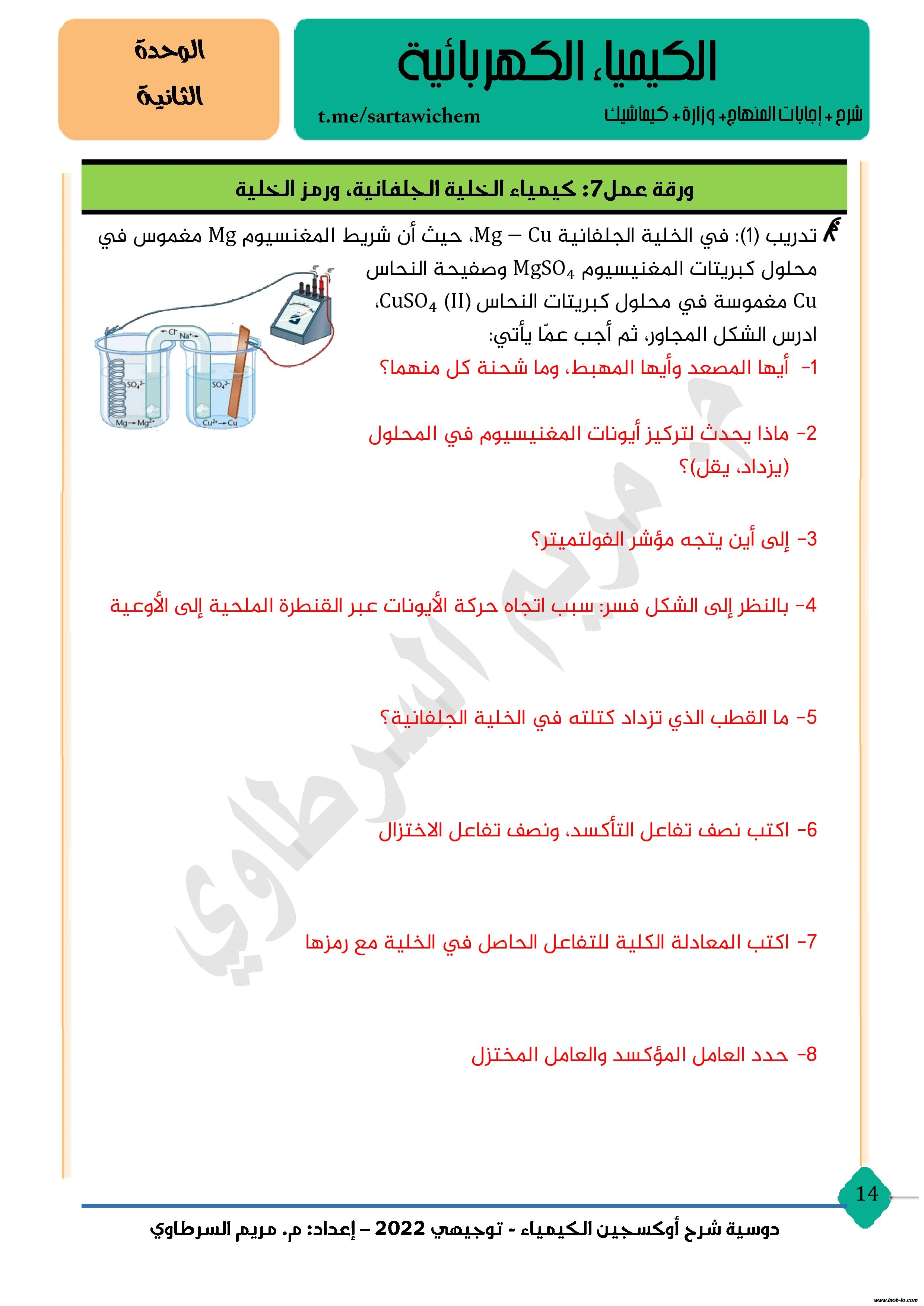 مجموعة اوراق عمل شاملة لدرس الخلايا الجلفانية لمادة الكمياء الصف الثاني عشر الفصل الاول 2022-2023