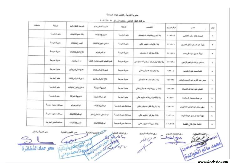 الدفعة الثانية - لواء الجامعة :. التنقلات الداخلية وتحديد المراكز للعام الدراسي 2023-2024