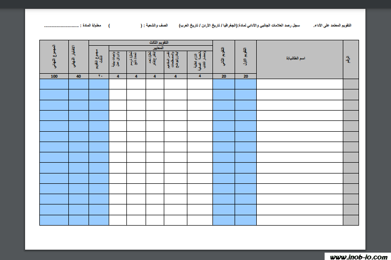 PDF سجل رصد العلامات الجانبي والأدائي لمادة الجغرافيا تاريخ الأردن تاريخ العرب للمرحلة الثانوية للصفوف الأول الثانوي والثاني الثانوي 2023
