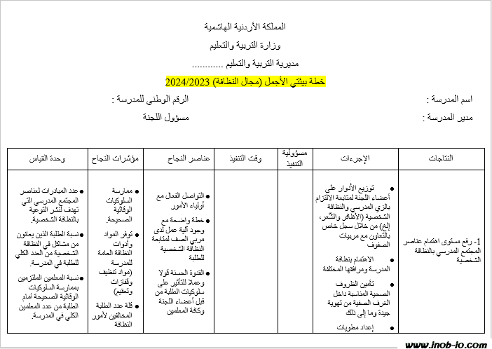 نموذج word قابل للتعديل :. خطة بيئتي الأجمل (مجال النظافة)