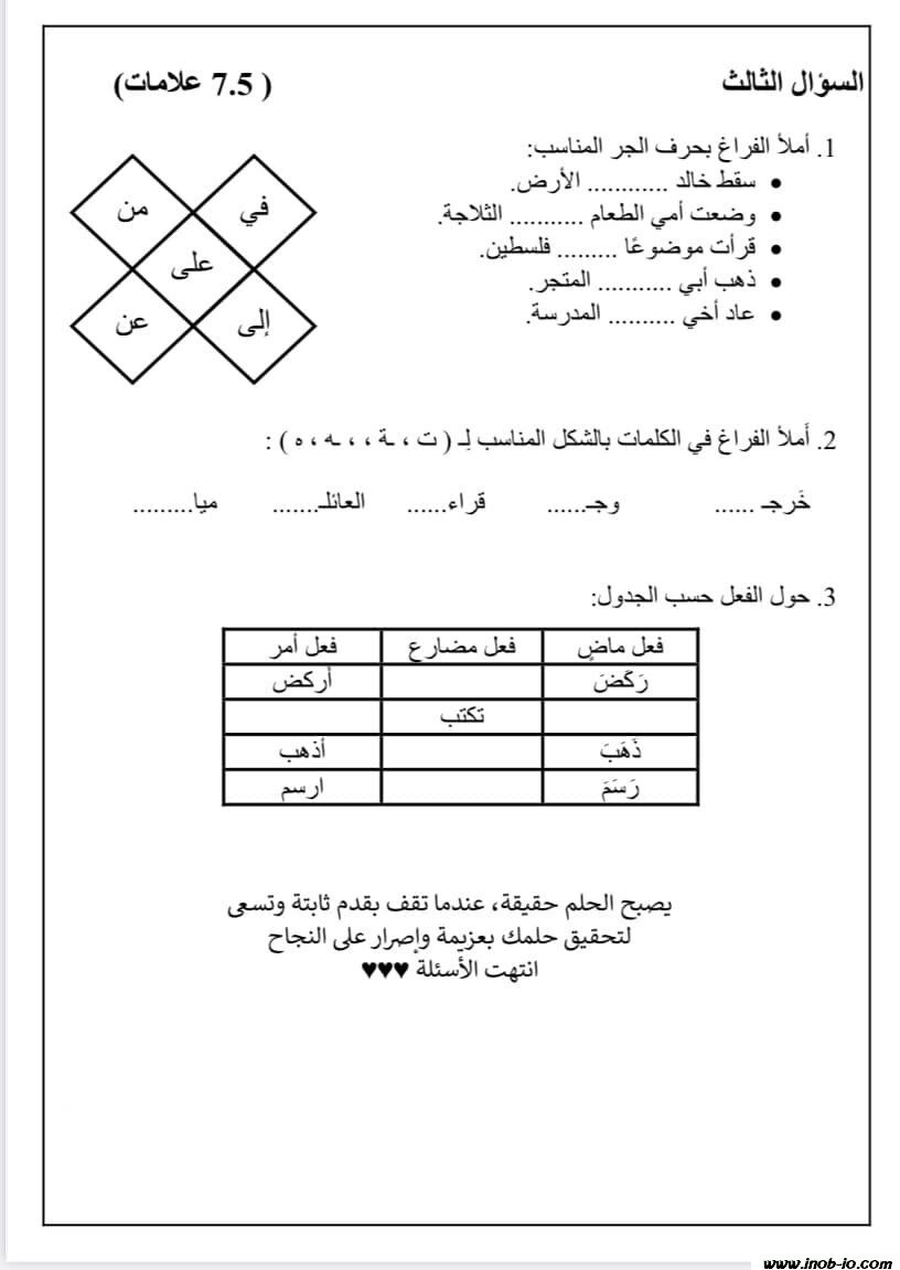بالصور امتحان الشهر الثاني مادة اللغة العربية للصف الثاني الفصل الاول