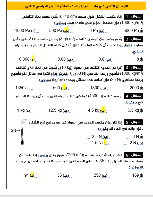امتحان الشهر الثاني لمادة الفيزياء Collins الصف العاشر الفصل الثاني