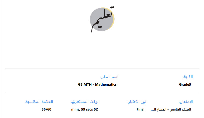امتحان نهاية الفصل الجزء الإلكتروني الرياضيات المتكاملة مع الإجابات الصف الخامس عام الفصل الثالث 2023-2024