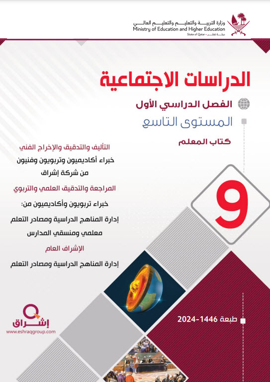 كتاب المعلم لمادة الدراسات الاجتماعية المستوى التاسع الفصل الاول المنهاج القطري نسخة 1446-2024
