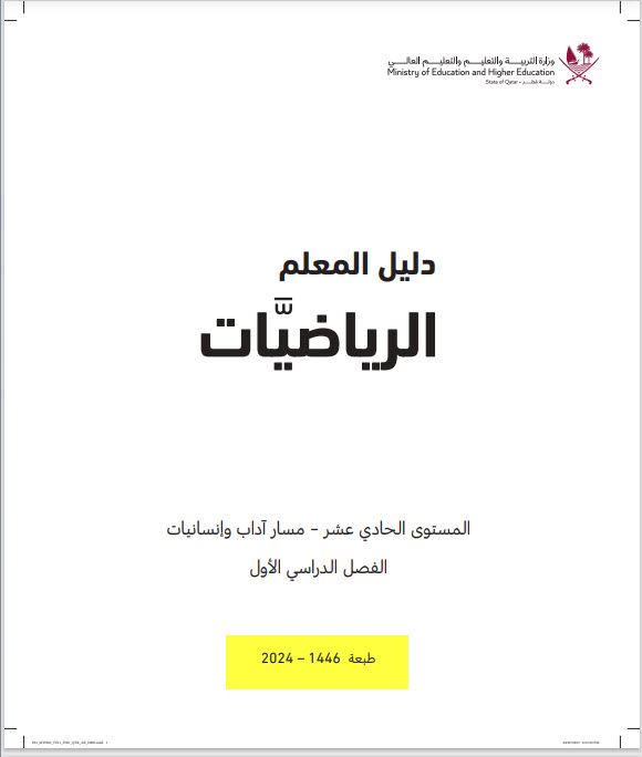 دليل المعلم لمادة الرياضيات مسار آداب وإنسانيات المستوى الحادي عشر الفصل الاول المنهاج القطري 1446-2024