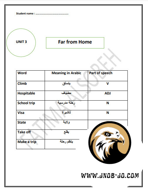 شرح وتلخيص وقواعد لوحدة Far from Home لمادة اللغة الانجليزية Jordan high note الصف التاسع الفصل الاول 2024-2025