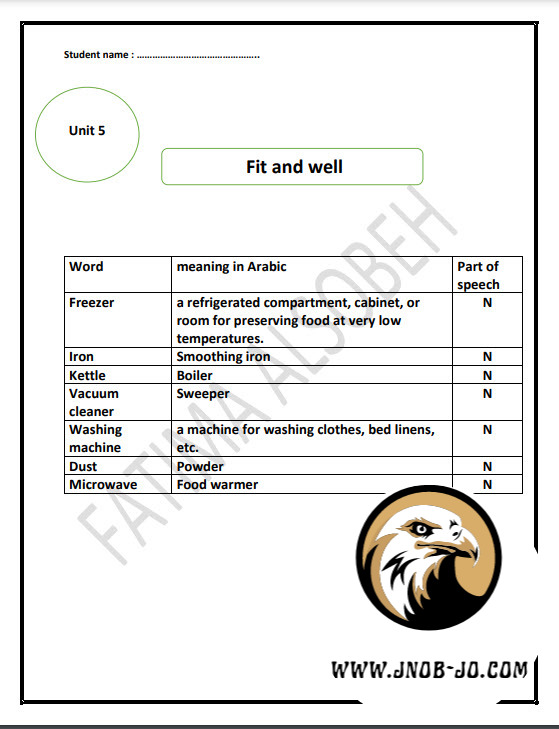 شرح وتلخيص وقواعد لوحدة Fit and well لمادة اللغة الانجليزية jordan high note الصف التاسع الفصل الاول 2024-2025