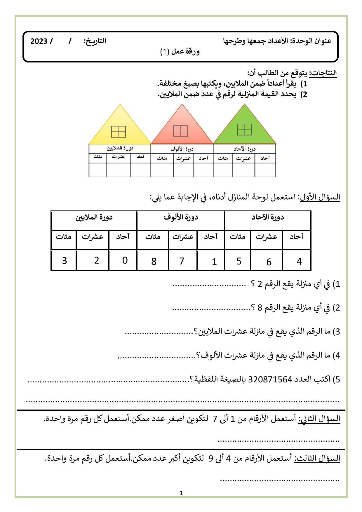 مجموعة أوراق لوحدة جمع الأعداد وطرحها عمل لمادة الرياضيات collins الصف الخامس الفصل الاول